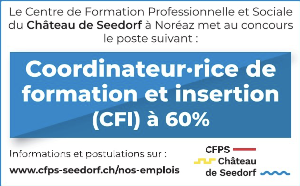 CFPS Château de Seedorf-Coordinateur/trice de formation et insertion 60%