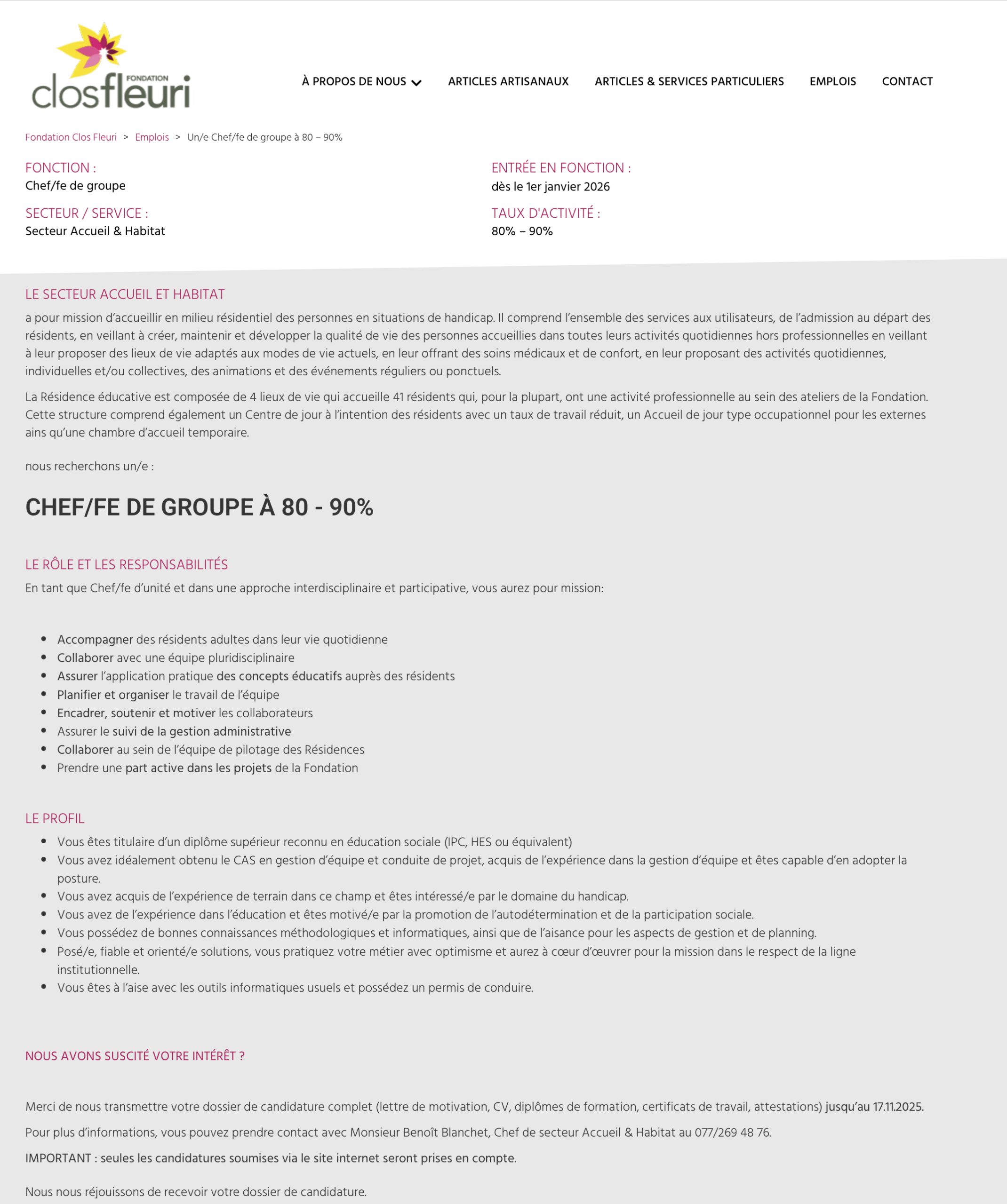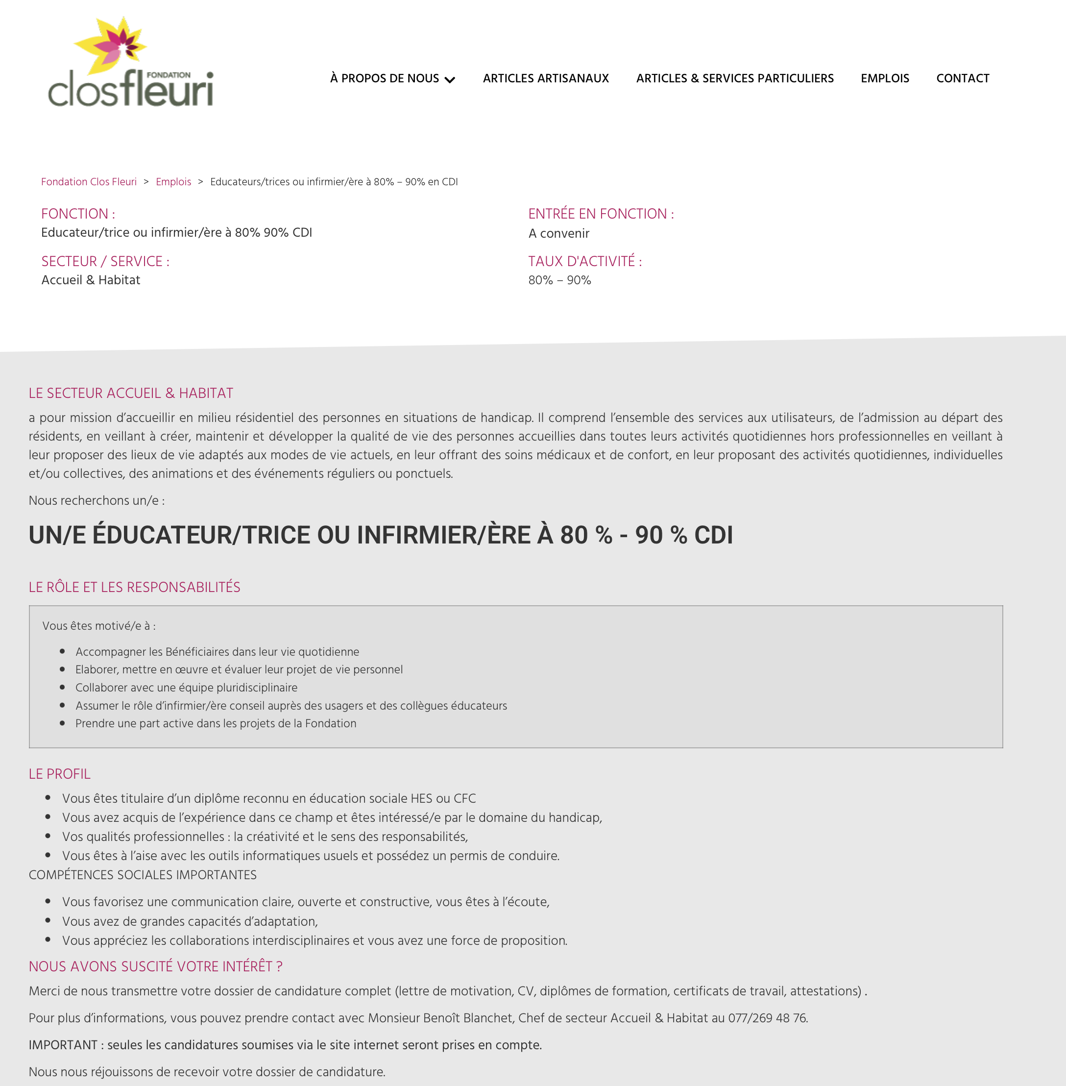 Clos Fleuri-Educateur/trice ou infirmier/ère 80-90%