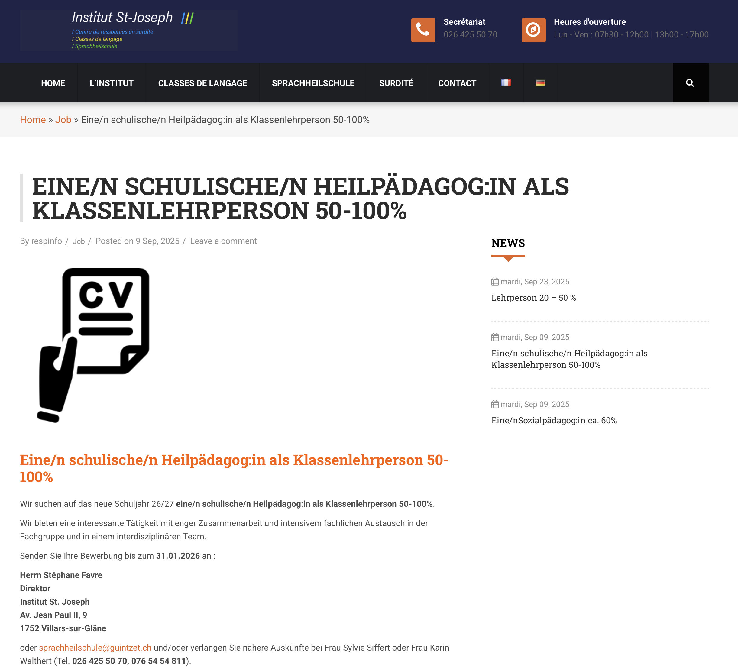 Institut St-Joseph-Schulische-n Heilpädagog-in 50-100%
