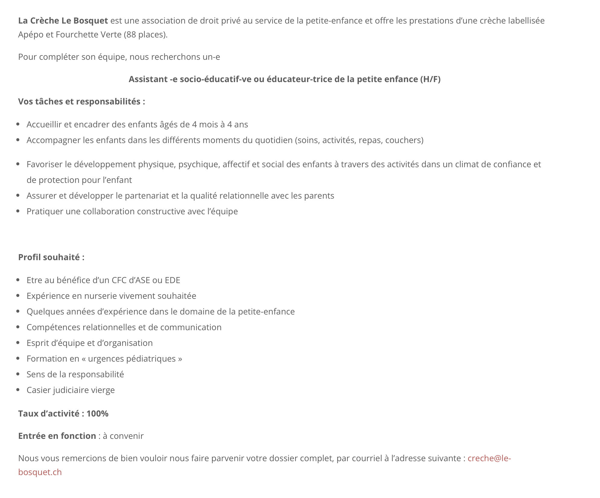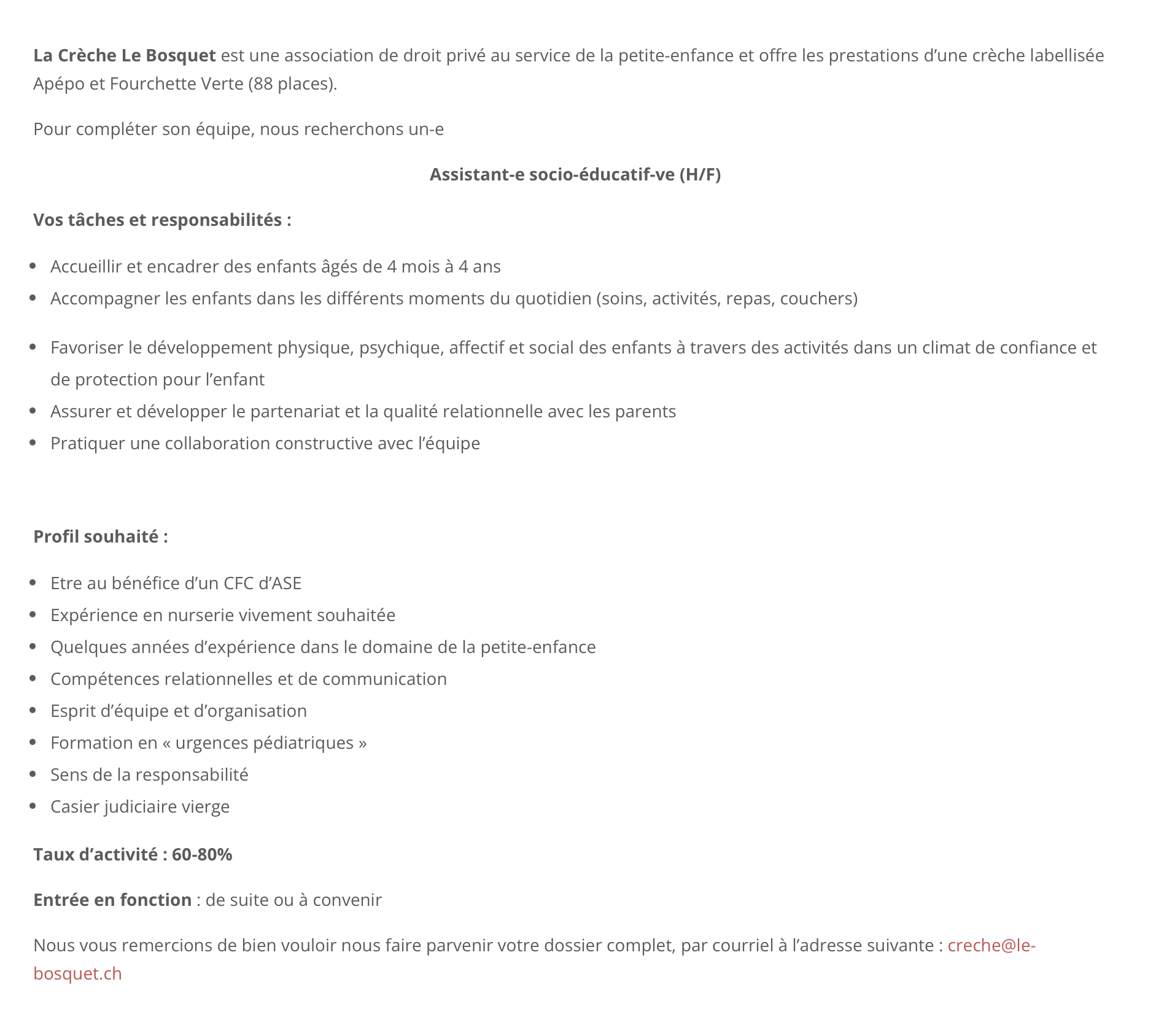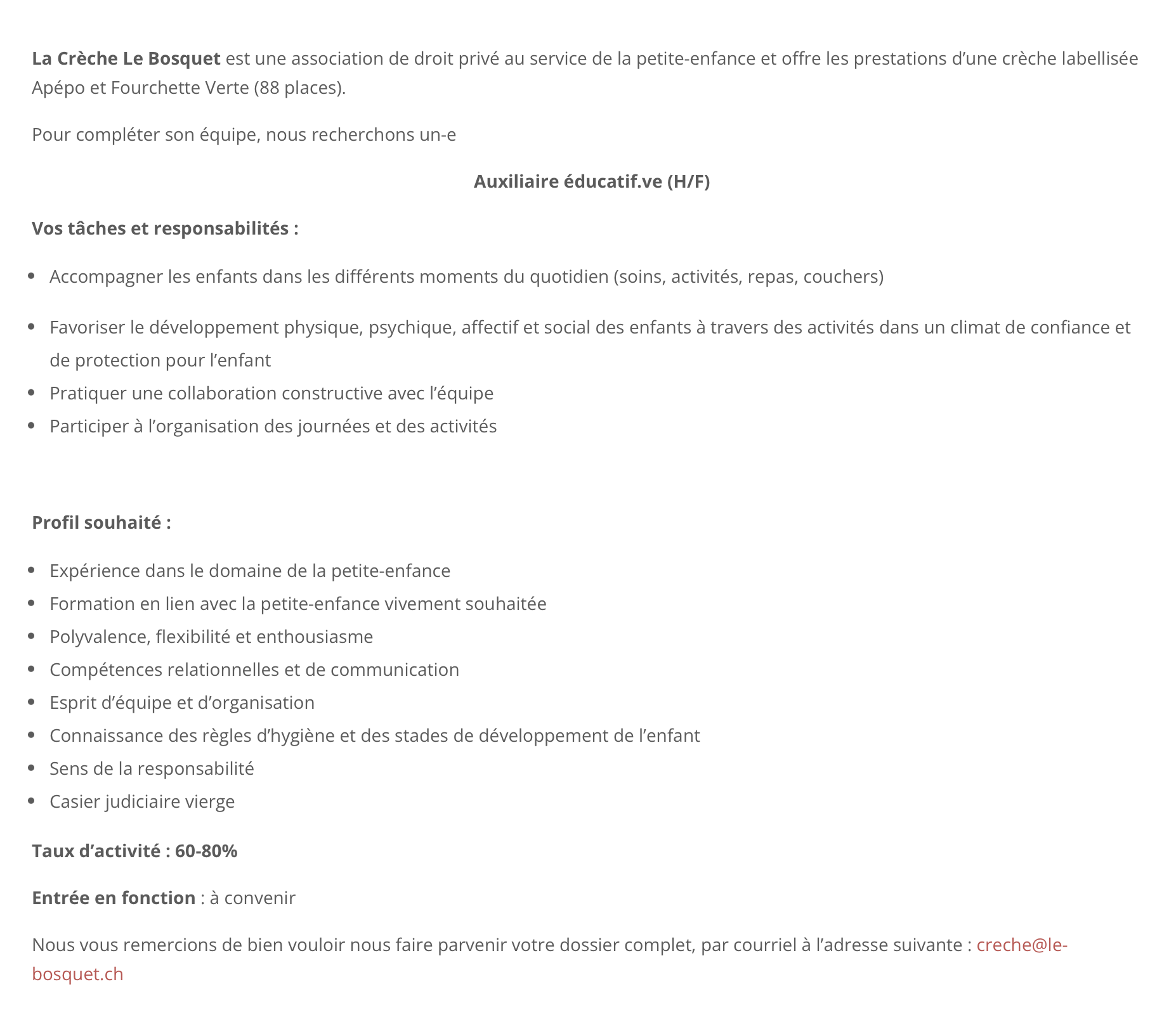 Crèche Le Bosquet_-Auxiliaire éducatif/ve 60-80%