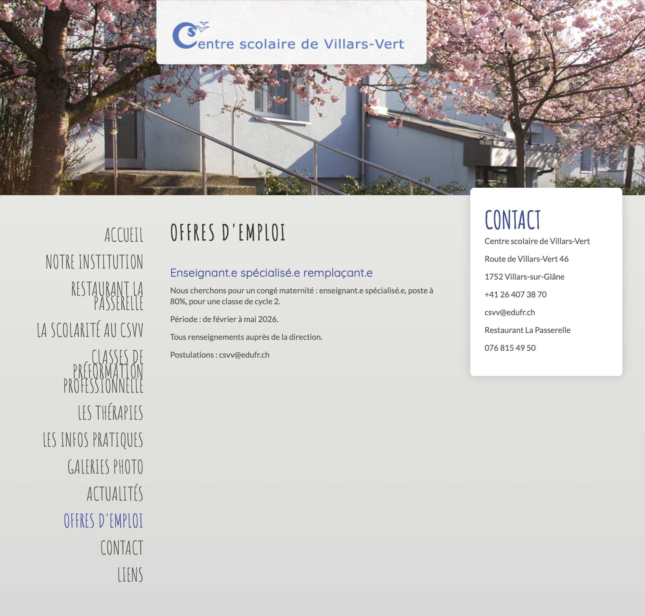 Centre scolaire Villars-Vert-Enseignant/e spécialisé/e remplaçant/e 80%
