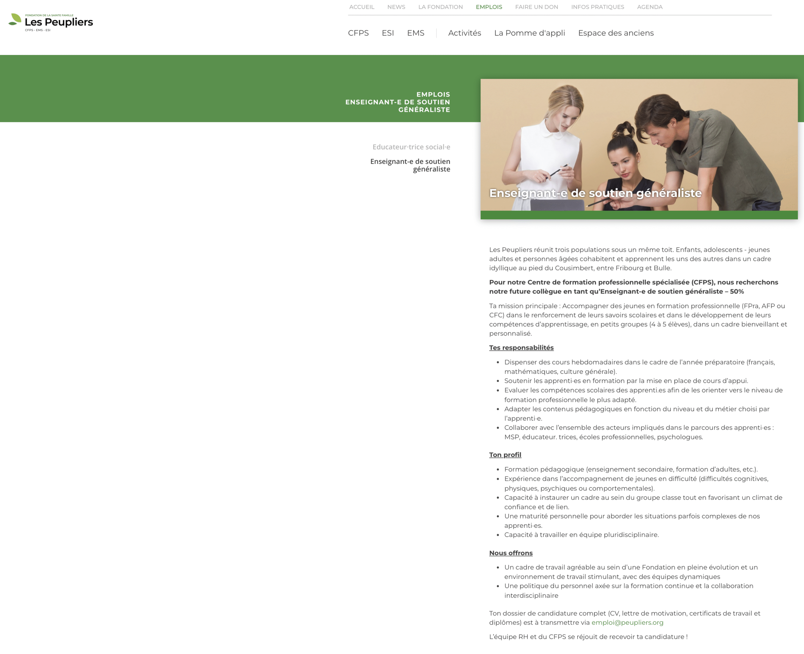 Les Peupliers-CFPS-Enseignant-e de soutien généraliste 50%
