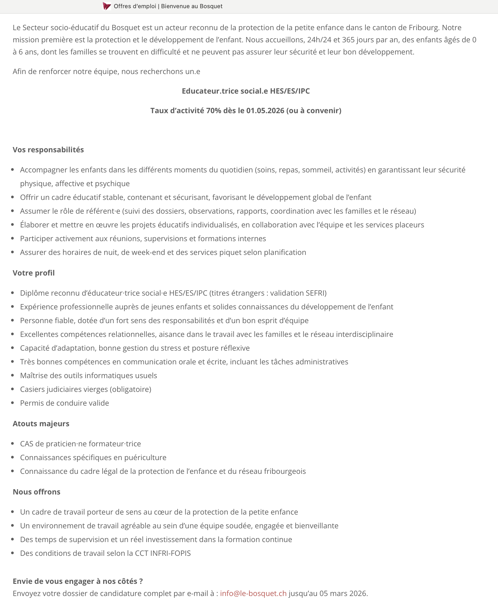 Le Bosquet-Educateur/trice social/e HES/ES/IPC 70%